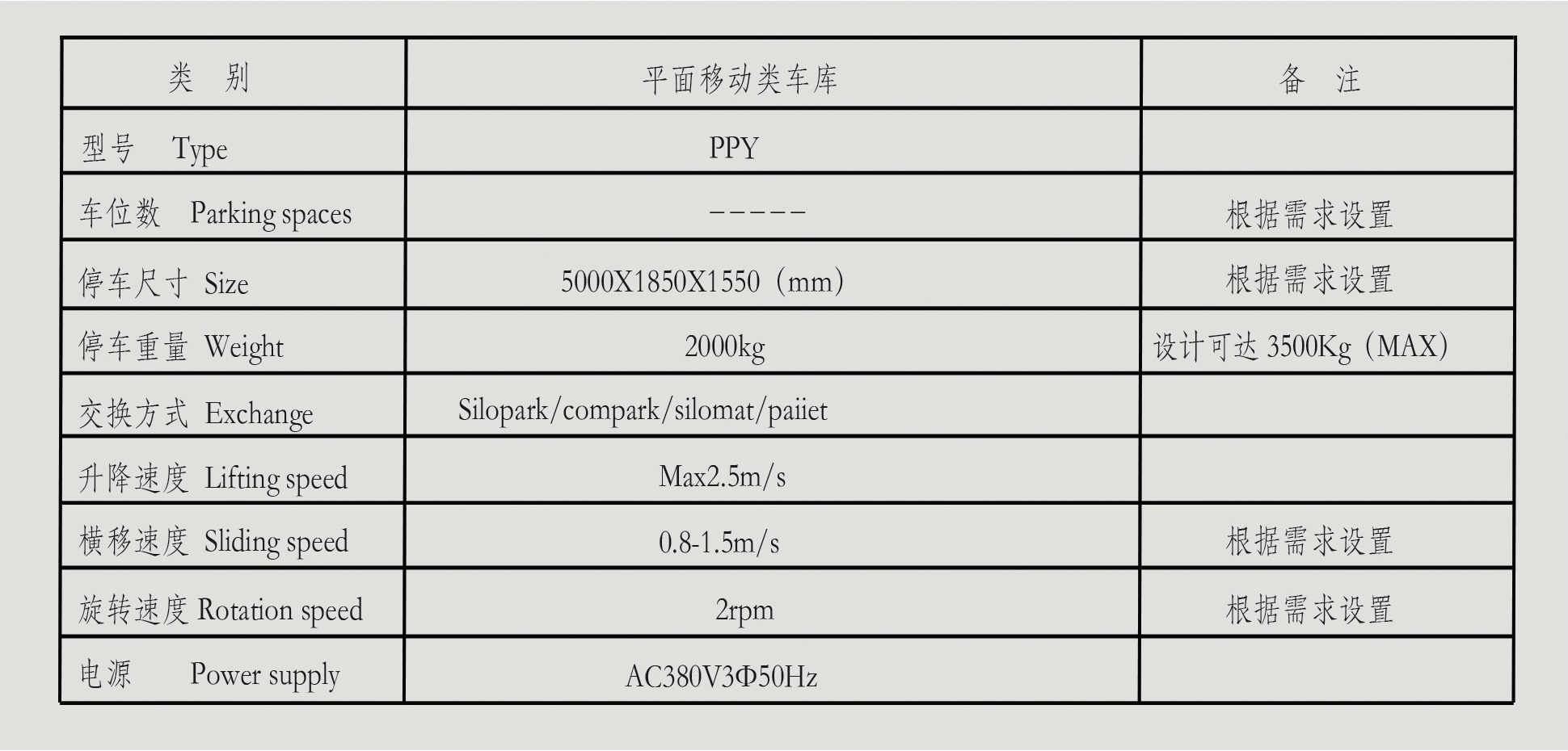 倉儲式平面移動式停車設(shè)備主要由升降機,水平臺車,梳齒式搬運器,存車架,檢測裝置和智能變頻控制系統(tǒng)組成。也可根據(jù)現(xiàn)場情況設(shè)置會轉(zhuǎn)盤,使車輛自動調(diào)頭