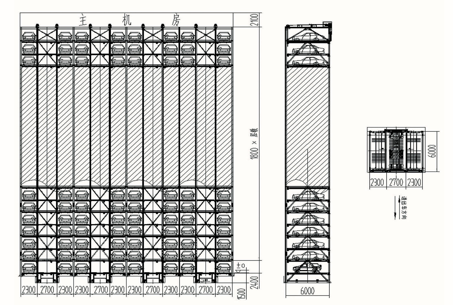 標(biāo)準(zhǔn)垂直升降式停車設(shè)備一般以二車位為一個層面,高可以建成25層,車輛容量數(shù)約為50臺高度約為50米,40臺高度約為36米。其占地面積較小,土地利用率較高,低震動,低噪音。該類型適用于高層辦公樓、住宅、醫(yī)院、綜合商業(yè)建筑等用地緊張的工程、新建獨立式立體車庫及老城區(qū)改造。