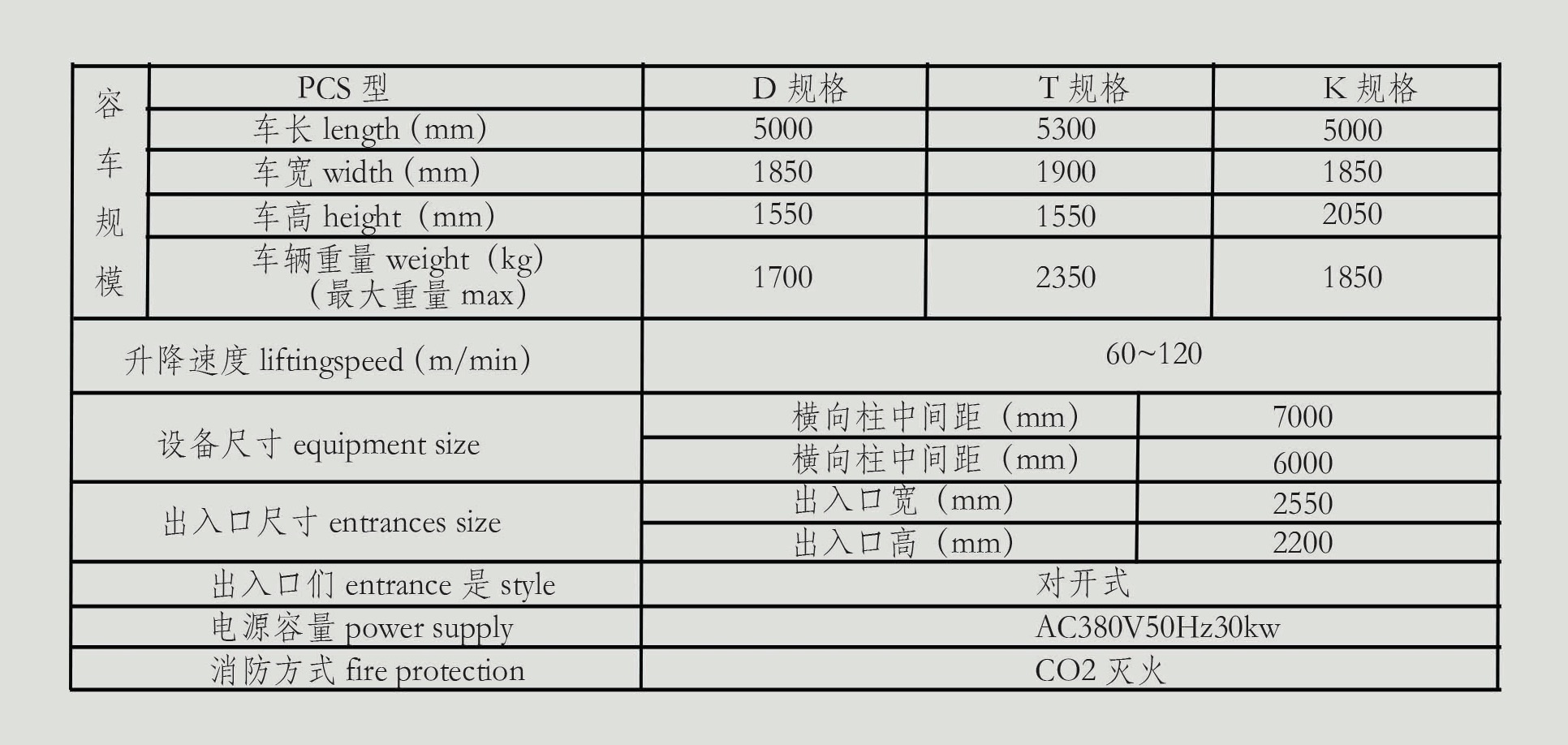 標(biāo)準(zhǔn)垂直升降式停車設(shè)備用提升機構(gòu)將車輛或載車板升降到指定層,然后用安裝在提升機構(gòu)上的橫移機構(gòu)將車輛或載車板送入存車位;或是相反,通過橫移機構(gòu)將車輛或載車板送入提升機構(gòu),提開機構(gòu)降到車輛出入口處,打開庫門,駕駛員將車輛開走。